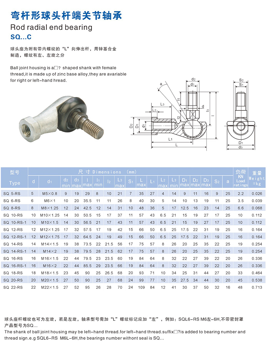 • 產(chǎn)品描述:彎桿形球頭桿端關(guān)節軸承